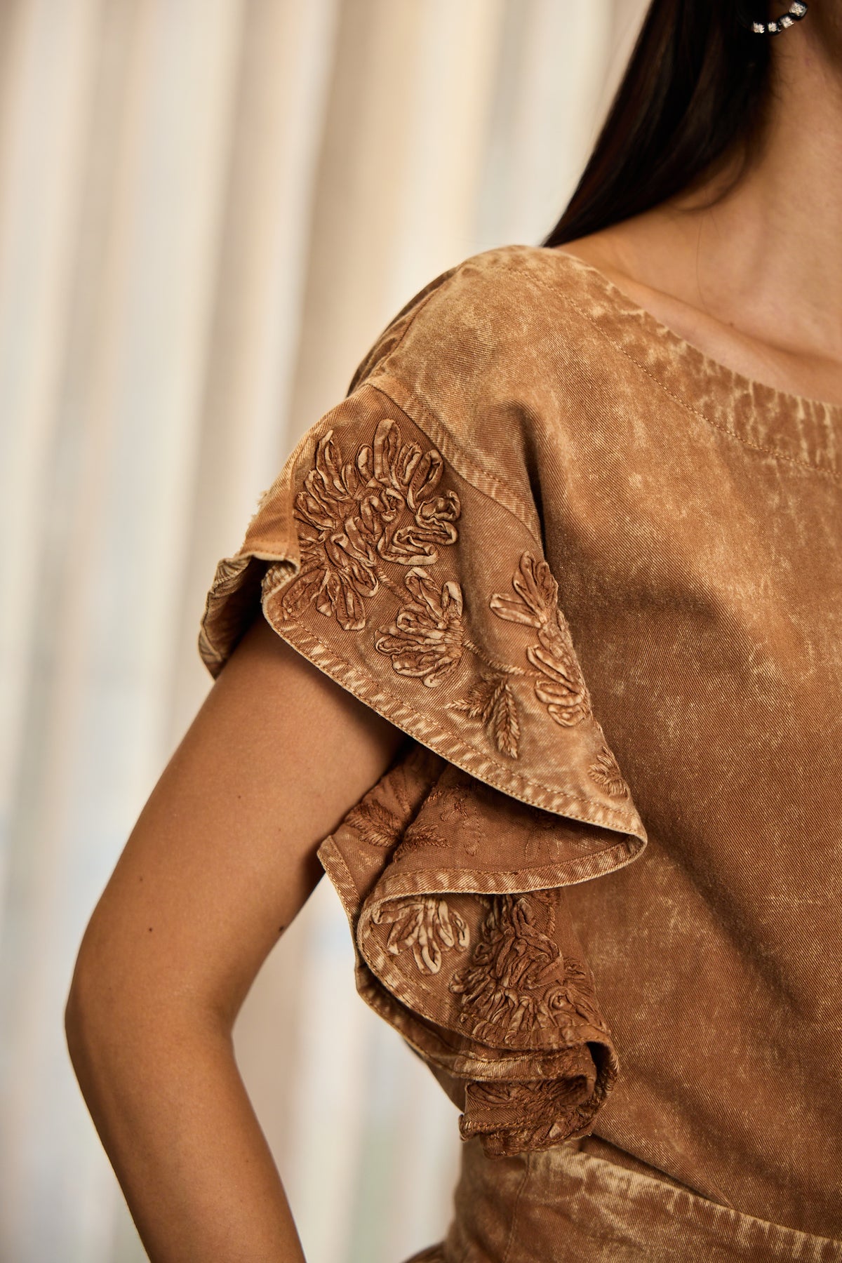 Crafted in rich earthy brown denim, this coord set embodies laid-back sophistication. With its relaxed silhouette and timeless appeal, it’s perfect for effortlessly elevating everyday style.