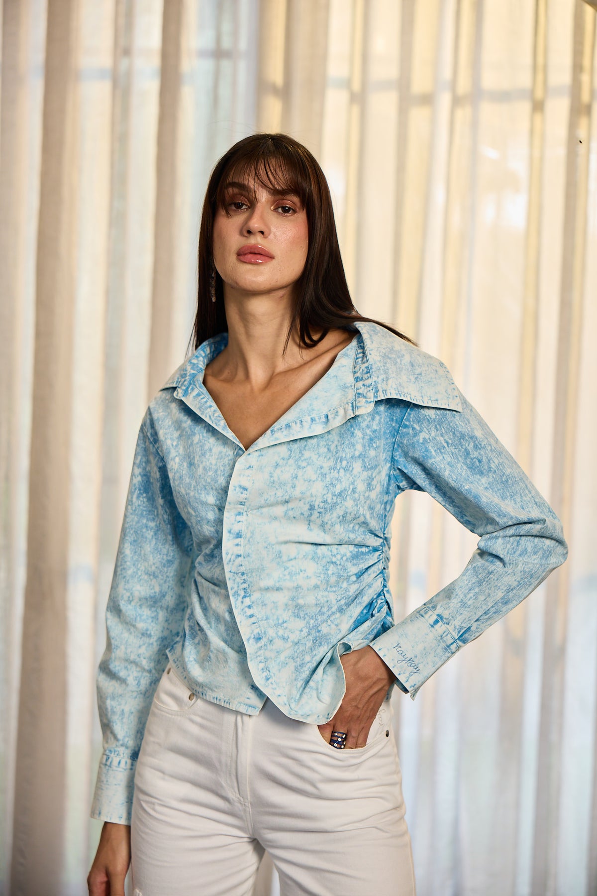 Brighten your wardrobe with this ice blue coord set in soft cotton-lycra poplin. Light, breathable, and effortlessly stylish, it’s perfect for a chic, everyday look.